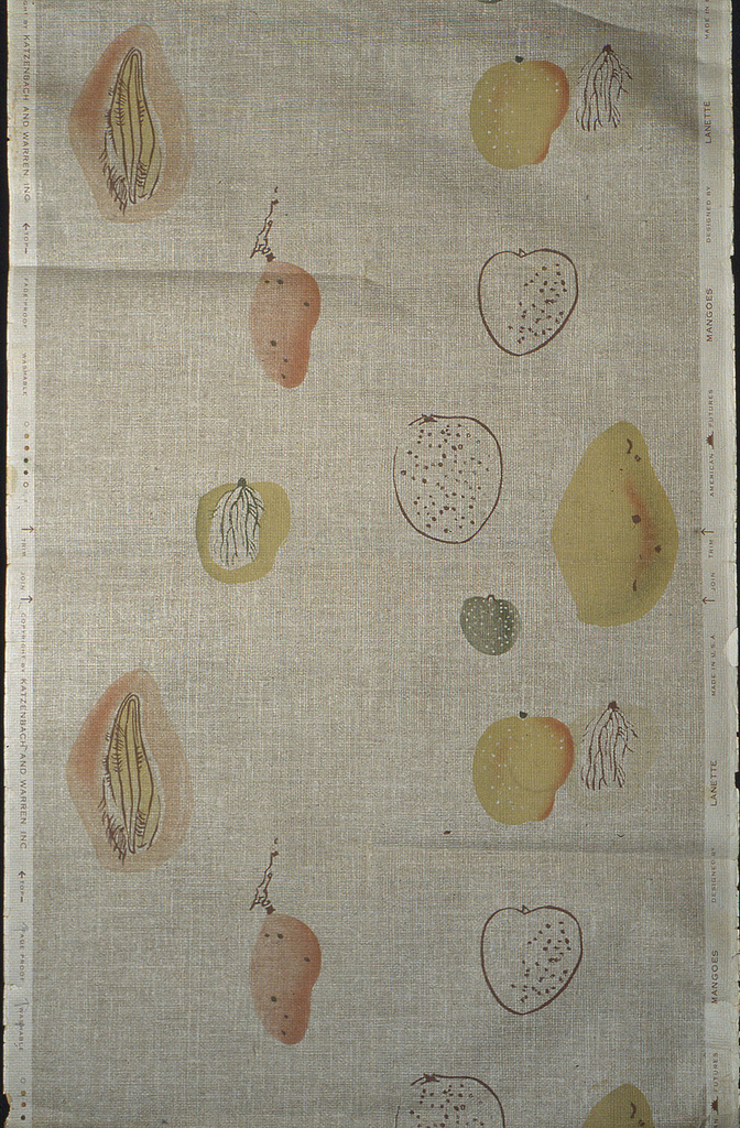 Printed in left selvedge: Copyright by Katzenbach & Warren, Inc.; printed in right selvedge: Mangoes Designed by Lanette.