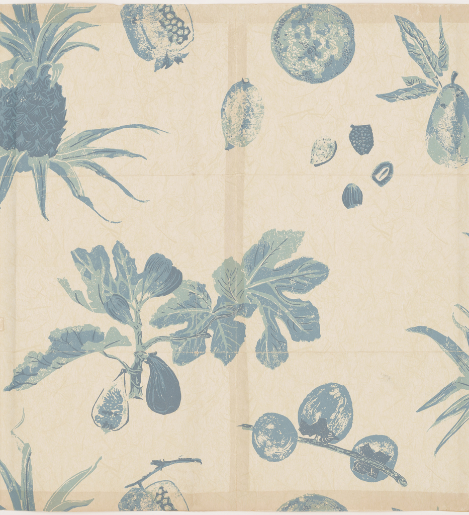 Sidewall, Pomegranate and Pineapple; Designed by Lanette Scheeline (American, 1910–2001); Manufactured by Katzenbach and Warren, Inc. (United States); USA; intaglio printed with photo-engraved roller; 52 x 50.5 cm (20 1/2 x 19 7/8 in. ); Gift of Lanette Scheeline; 1998-29-69