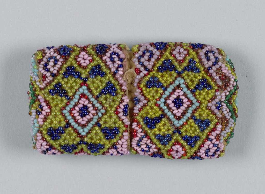 This is a Container. It is dated early 20th century and we acquired it in 1999. Its medium is glass beads, plant material and its technique is strung beadwork, basketry. It is a part of the Textiles department.