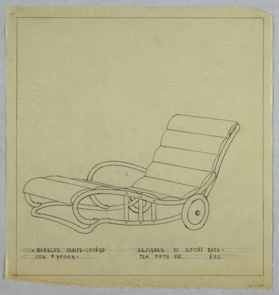 Drawing, Wheeled Chaise Lounge; Designed by Alfons Bach (American, b. Germany, 1904–1999); USA; graphite on cream tracing paper; 29.2 × 27.7 cm (11 1/2 × 10 7/8 in.); Gift of Alfons and Anita S. Bach; 1998-71-33