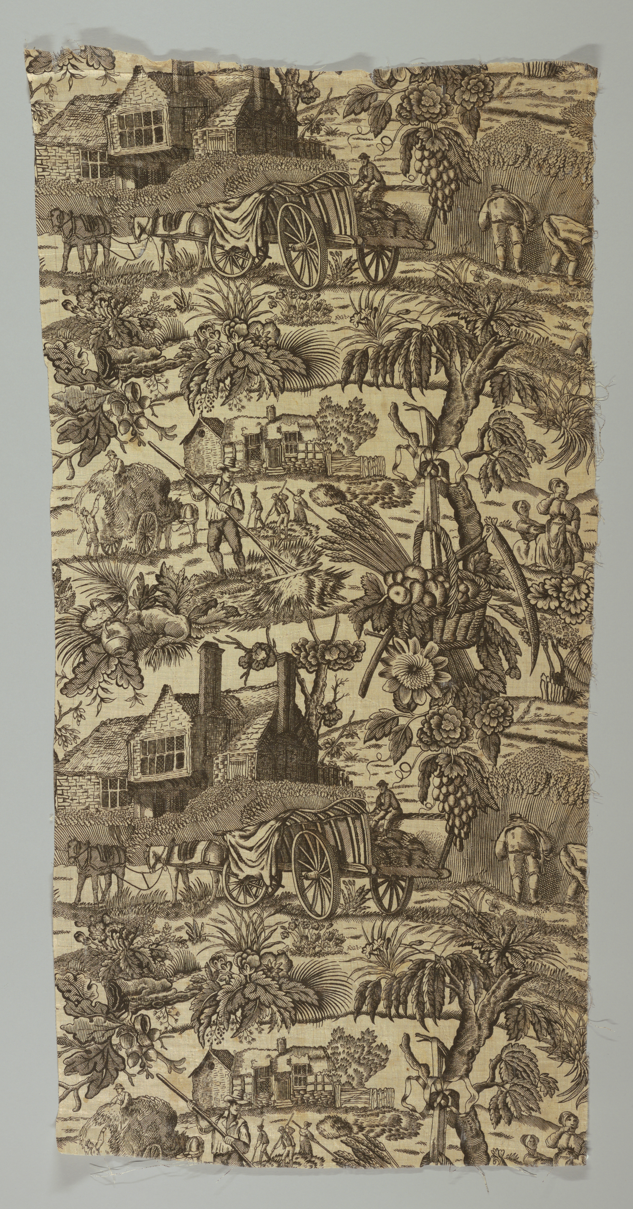 This is a Fragment. It is dated ca. 1815 and we acquired it in 1995. Its medium is cotton and its technique is roller printed on plain weave; glazed. It is a part of the Textiles department.