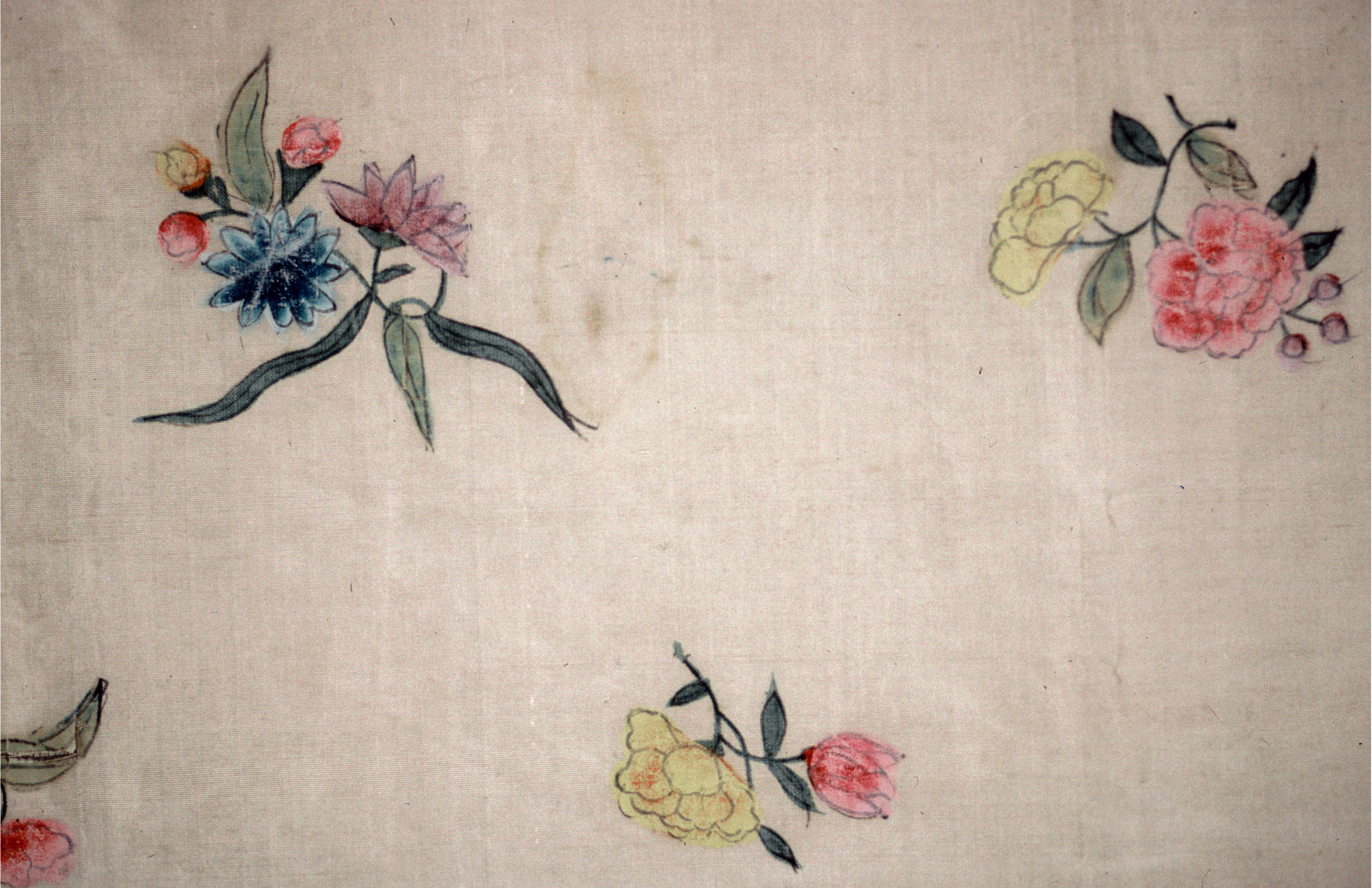 This is a Dress panels. It is dated mid-18th century and we acquired it in 1995. Its medium is silk and its technique is painted over printed outline on plain weave. It is a part of the Textiles department.