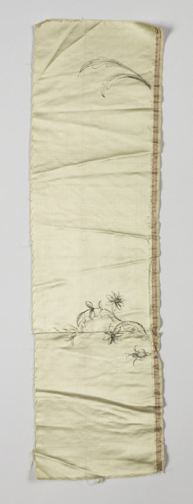 Design For Embroidery (England); silk, ink, graphite; H x W (a): 65 x 107 cm (25 9/16 x 42 1/8 in.) H x W (b): 62 x 103 cm (24 7/16 x 40 9/16 in.) H x W (c): 62 x 17.5 cm (24 7/16 x 6 7/8 in.); Museum purchase through gift of Mrs. John Innes Kane and Mrs. William Goulding; 1998-26-1-a/c
