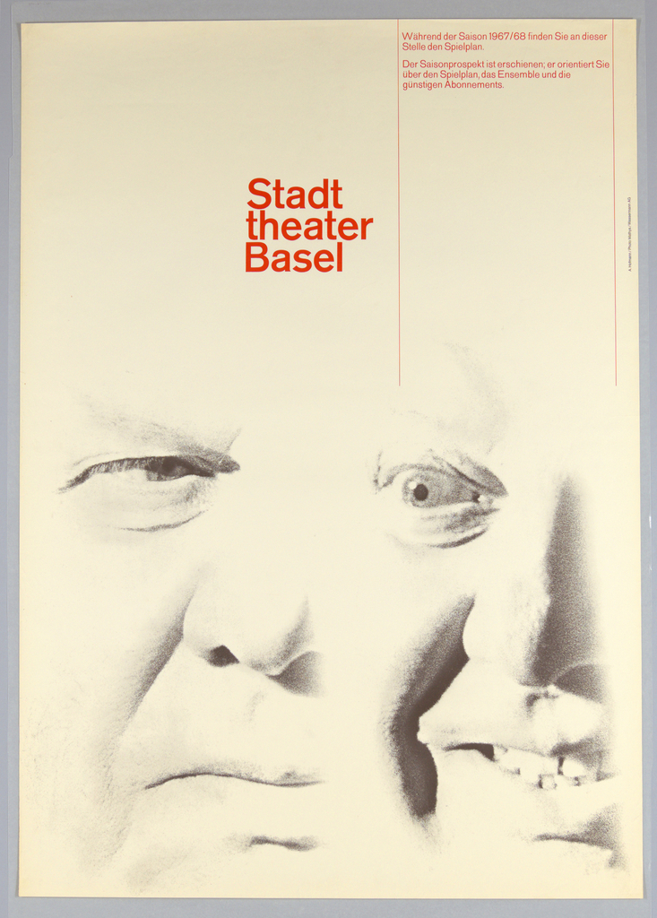 Poster, 1967/68 Stadttheater Basel [Poster for the 1967-68 season of the City Theater, Basel]; Designed by Armin Hofmann (Swiss, b.1920); Photographed by Max Mathys (Swiss); Collected by Dan Friedman (American, 1945–1995); Switzerland; offset lithograph on white wove paper; 127.6 x 90.2 cm (50 1/4 x 35 1/2 in. ); Gift of Ken Friedman; 1997-19-149