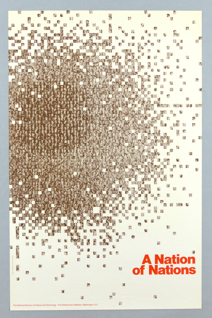 Poster, A Nation of Nations, The National Museum of History and Technology, Smithsonian Institution; Designed by Steff Geissbühler (Swiss, b.1942); Firm: Chermayeff & Geismar Associates (United States); USA; offset lithography on white wove paper; 101.4 x 65.4 cm (39 15/16 x 25 3/4 in. ); Gift of Ken Friedman; 1997-19-245