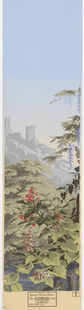 Scenic, El Dorado; France; block-printed; 400 x 57 cm (157 1/2 x 22 7/16 in. ); Gift of Agnes Bourne; 2000-44-28