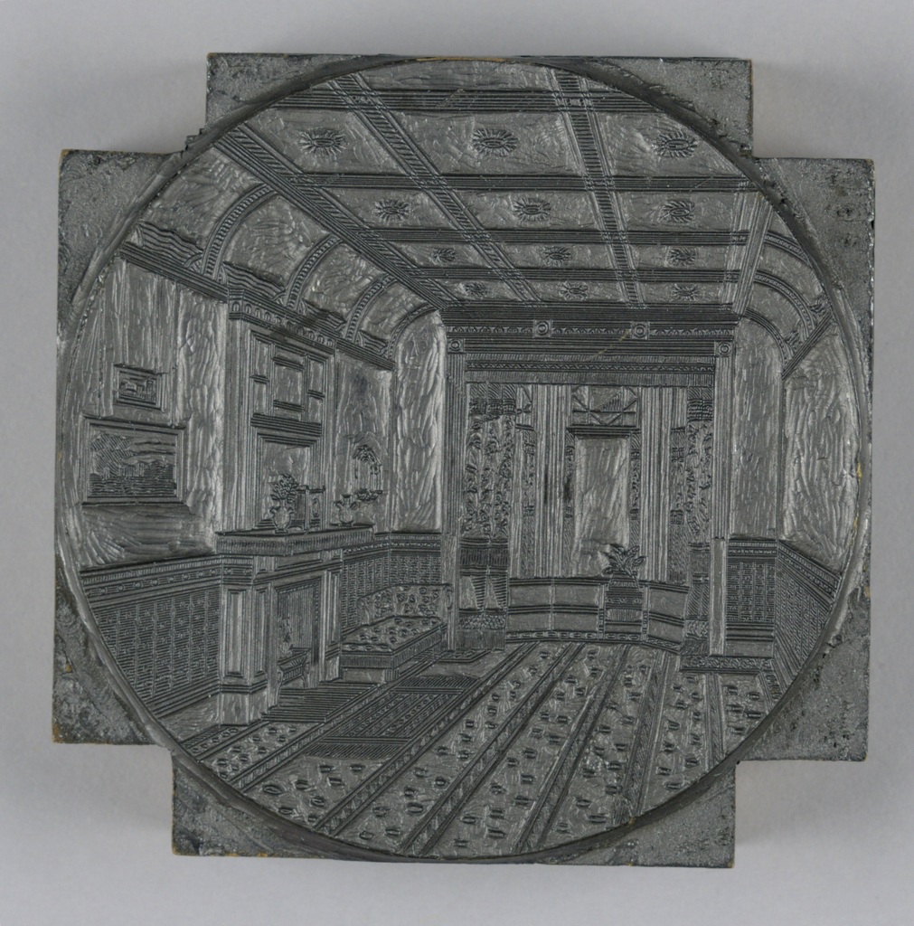 Woodblock, Interior of a Parlor; possibly USA; wood, with graphite coating on surface; Gift of Anonymous Donor; a-d-328