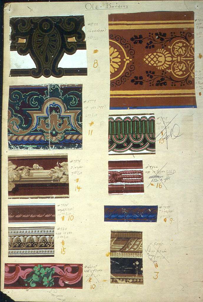 This is a Border. It is dated 1820–50 and we acquired it in 1999. Its medium is block-printed and flocked. It is a part of the Wallcoverings department.