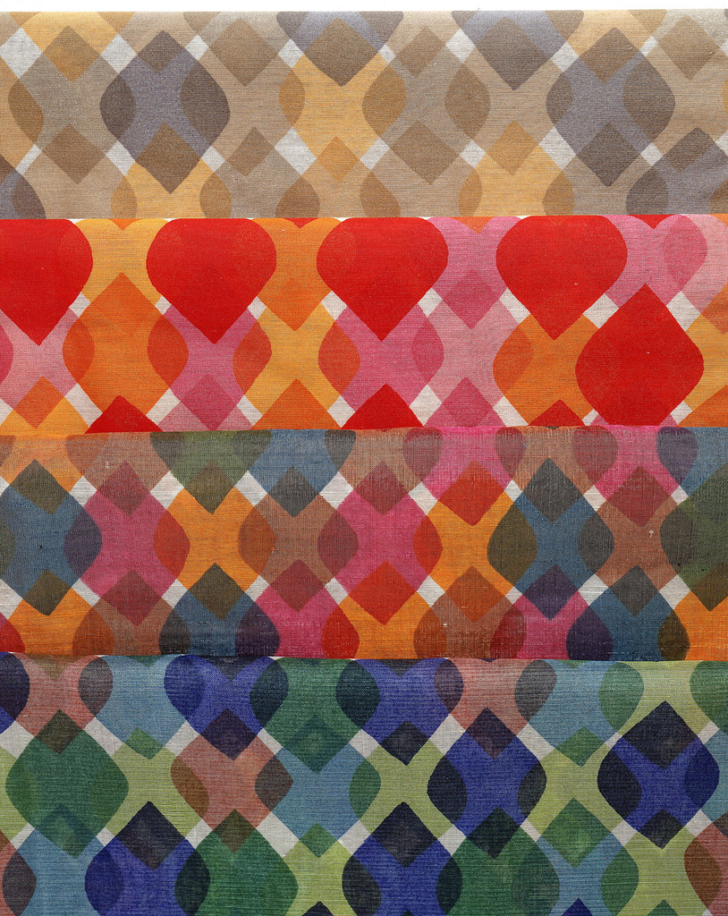 This is a Sample. It was designed by Alexander Hayden Girard and manufactured by American Art Textile Printing Company, Inc. and produced by Herman Miller Textiles. It is dated 1957 and we acquired it in 1969. Its medium is 81% cotton, 19% polyester and its technique is screen printed on plain weave. It is a part of the Textiles department.