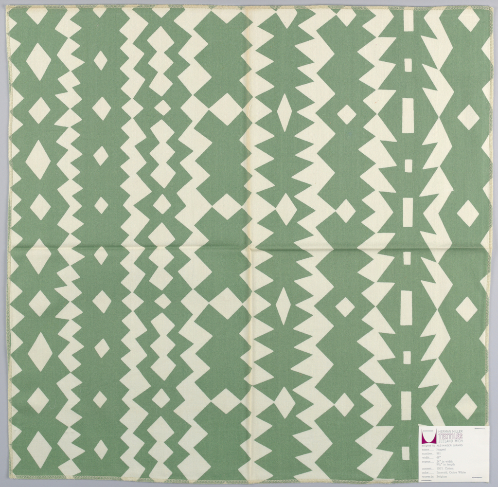 Sample, Jagged; Designed by Alexander Hayden Girard (American, 1907–1993); Produced by Herman Miller Furniture Company (United States); cotton; H x W: 59.7 x 59.7 cm (23 1/2 x 23 1/2 in.); Gift of Alexander H. Girard; 1969-165-113
