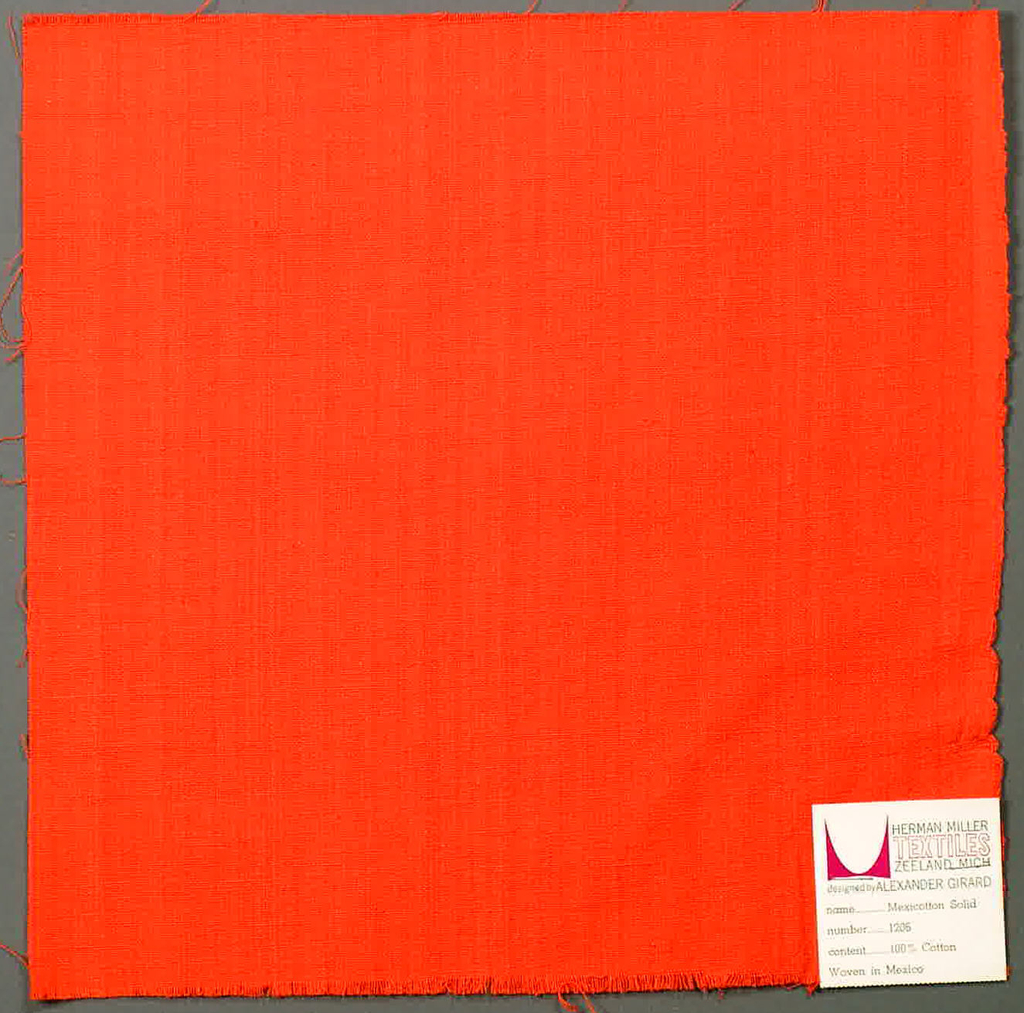 Sample, Mexicotton Solid; Designed by Alexander Hayden Girard (American, 1907–1993); Produced by Herman Miller Furniture Company (United States); USA; cotton; Warp x Weft: 30.5 x 30.5 cm (12 x 12 in.); Gift of Alexander H. Girard; 1969-165-540