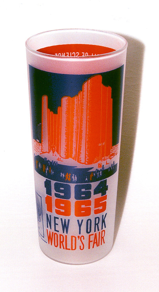 Hall of Science Glass; USA; glass, enamel decoration; 17h x 7 diameter cm (6 11/16 x 2 3/4 in. ); Gift of Max Pine; 1999-53-6
