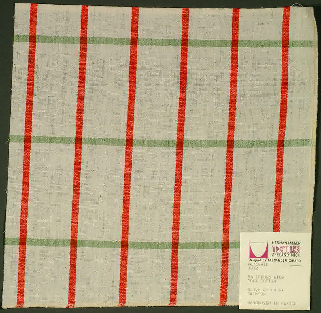 <ref name=CH>{{cite web |url=https://www-4.collection.cooperhewitt.org/objects/18678437/ |title=Sample, Mexigrid |author=Cooper Hewitt, Smithsonian Design Museum |accessdate=20 December 2025 |publisher=Smithsonian Institution}}</ref>