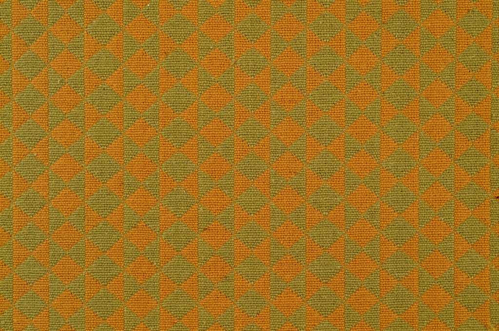 This is a Sample. It was designed by Alexander Hayden Girard and manufactured by Moss Rose Mfg. Co and produced by Herman Miller Furniture Company. It is dated 1960 and we acquired it in 1969. Its medium is cotton (63%) and nylon (37%) and its technique is two intercrossed plain weave structures (double cloth). It is a part of the Textiles department.