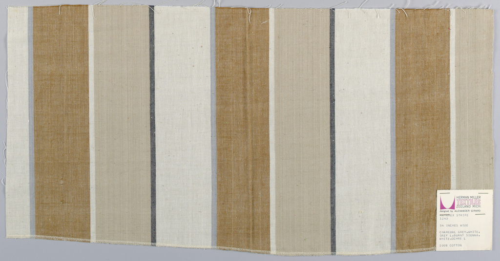Sample, Rayamex Stripe; Designed by Alexander Hayden Girard (American, 1907–1993); Produced by Herman Miller Furniture Company (United States); USA; cotton; Warp x Weft: 30.5 x 60.3 cm (12 x 23 3/4 in.); Gift of Alexander H. Girard; 1969-165-719