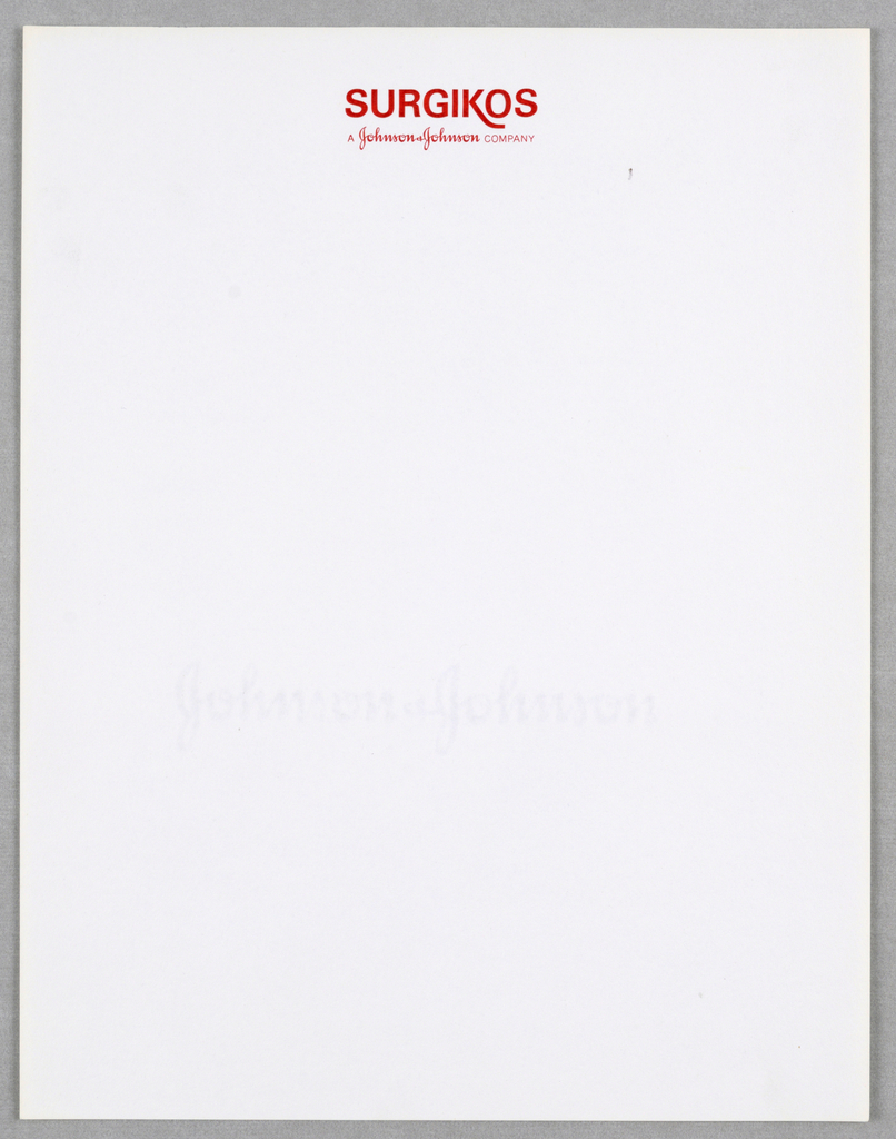 Letterhead, Surgikos / A Johnson & Johnson Company; Graphic design by Unknown (American); letterpress: red ink on white wove paper; 27.9 x 21. cm (11 x 8 1/4 in. ); Gift of Thomas F. O'Malley; 1999-59-24