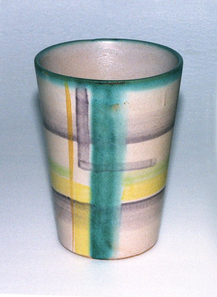 This is a beaker. It was manufactured by Carstens-Neuhaldensleben. It is dated ca. 1930 and we acquired it in 1999. Its medium is glazed earthenware. It is a part of the Product Design and Decorative Arts department.