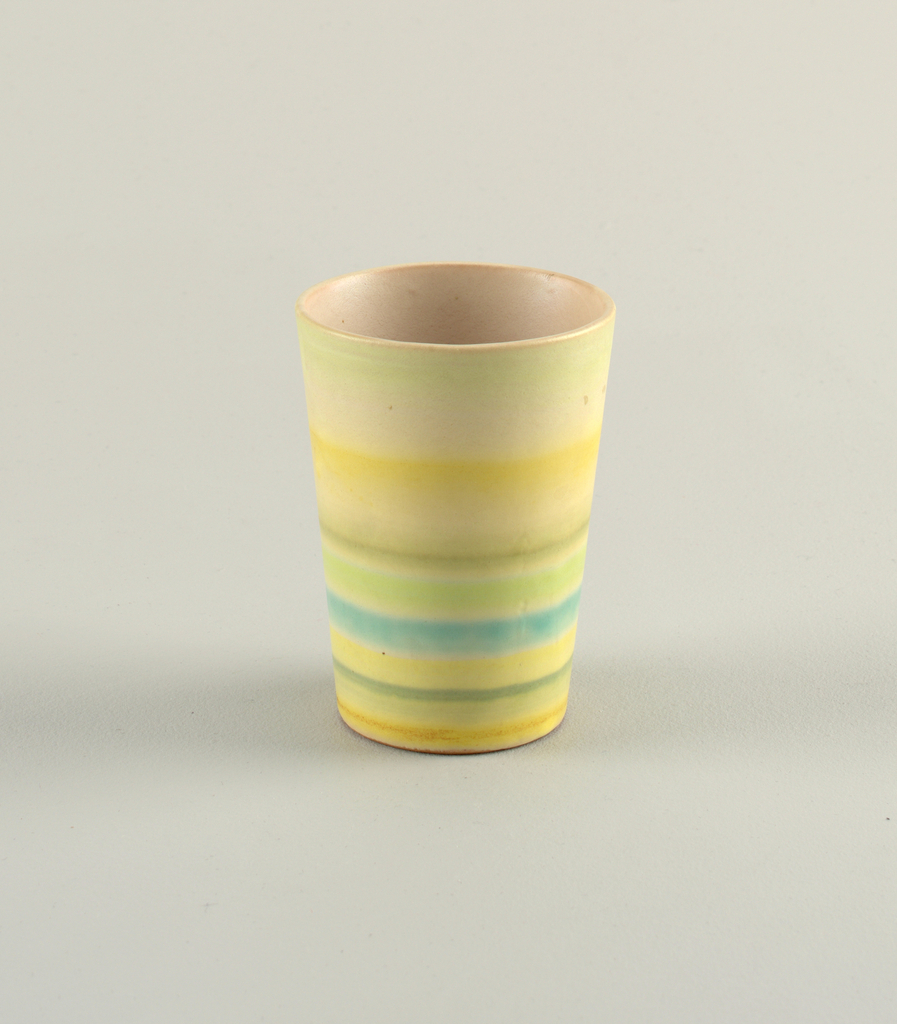 This is a beaker. It was manufactured by Carstens-Neuhaldensleben. It is dated ca. 1930 and we acquired it in 1999. Its medium is glazed earthenware. It is a part of the Product Design and Decorative Arts department.
