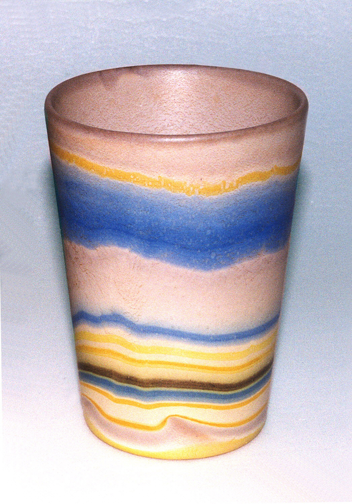 This is a beaker. It was manufactured by Carstens-Neuhaldensleben. It is dated ca. 1930 and we acquired it in 1999. Its medium is glazed earthenware. It is a part of the Product Design and Decorative Arts department.