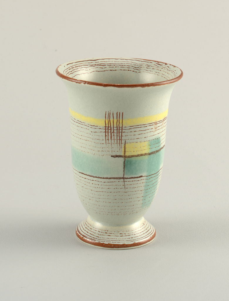 Vase (Germany); Manufactured by Carstens-Uffrecht (Germany); glazed earthenware; 15.5h x 11.8 diameter cm (6 1/8 x 4 5/8 in. ); Gift of Victor Wiener; 1999-57-19