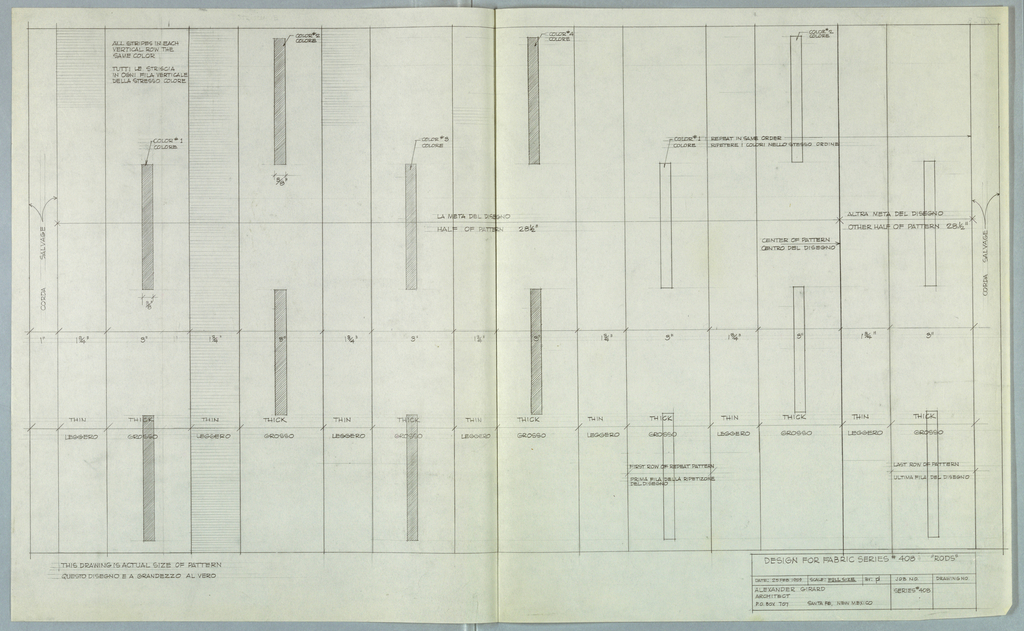 Drawing, Textile Design: Rods, nos. 408-409; Designed by Alexander Hayden Girard (American, 1907–1993); Office of Herman Miller Furniture Company (United States); graphite on white tracing paper; 55.9 x 91.4 cm (22 x 36 in.); Gift of Alexander H. Girard; 1969-165-291
