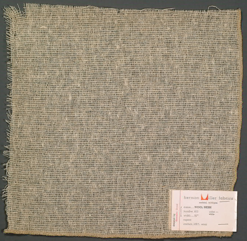 Sample, Wool Mesh; Designed by Alexander Hayden Girard (American, 1907–1993); Produced by Herman Miller Furniture Company (United States); USA; wool; Warp x Weft: 30.5 x 31.8 cm (12 x 12 1/2 in.); Gift of Alexander H. Girard; 1969-165-988