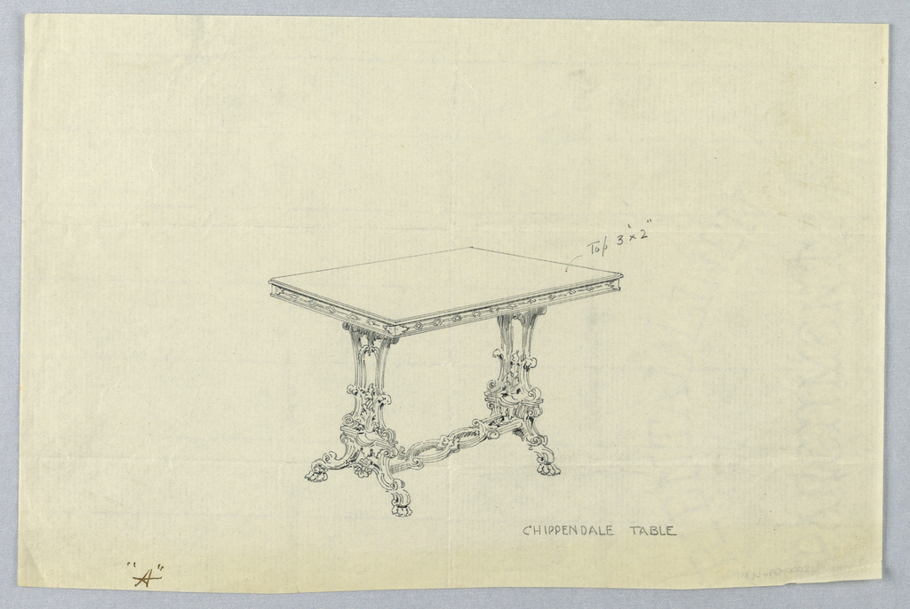 Drawing, Design for Small Chippendale Table "A"; Designed by A.N. Davenport Co.; Gift of The Lake St. Louis Historical Society; 2000-69-434