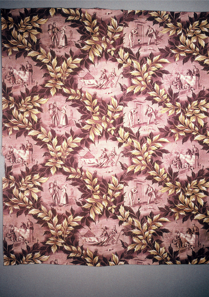 This is a Textile. It is dated ca. 1840 and we acquired it in 1995. Its medium is cotton and its technique is roller printed on plain weave. It is a part of the Textiles department.