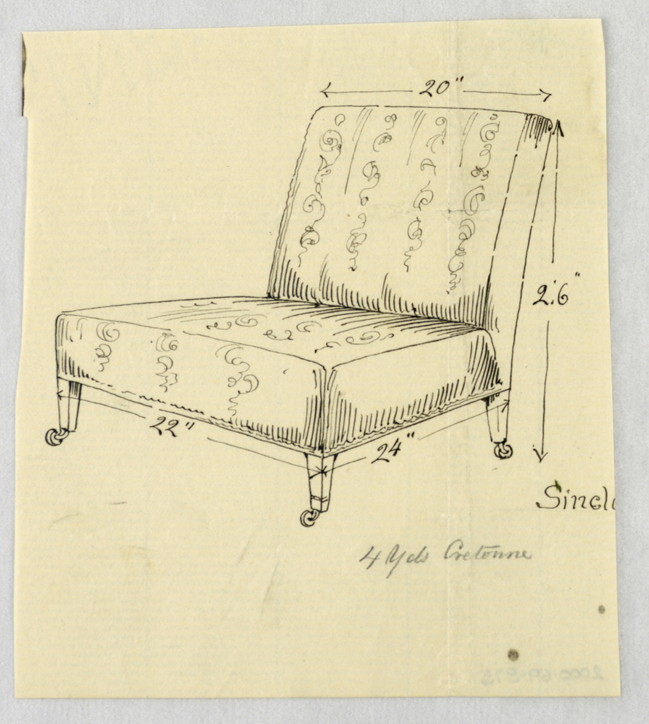 Drawing, Design for Stuffed Chair, Rocker, and Arm Chair (easy chair); Designed by A.N. Davenport Co.; Gift of The Lake St. Louis Historical Society; 2000-69-875