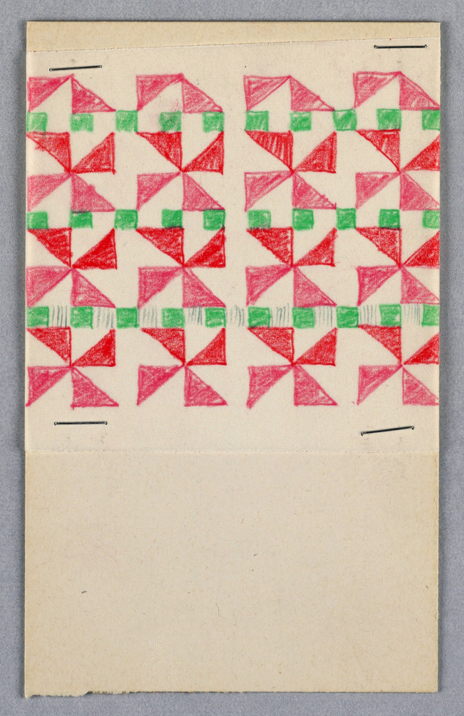 Drawing, Textile Design: Inventory Card; Designed by Alexander Hayden Girard (American, 1907–1993); Office of Herman Miller Furniture Company (United States); USA; color pencil, graphite on white tracing paper fastened to cardboard with four staples; 10.2 x 9.8 cm (4 x 3 7/8 in.); Gift of Alexander H. Girard; 1969-165-442