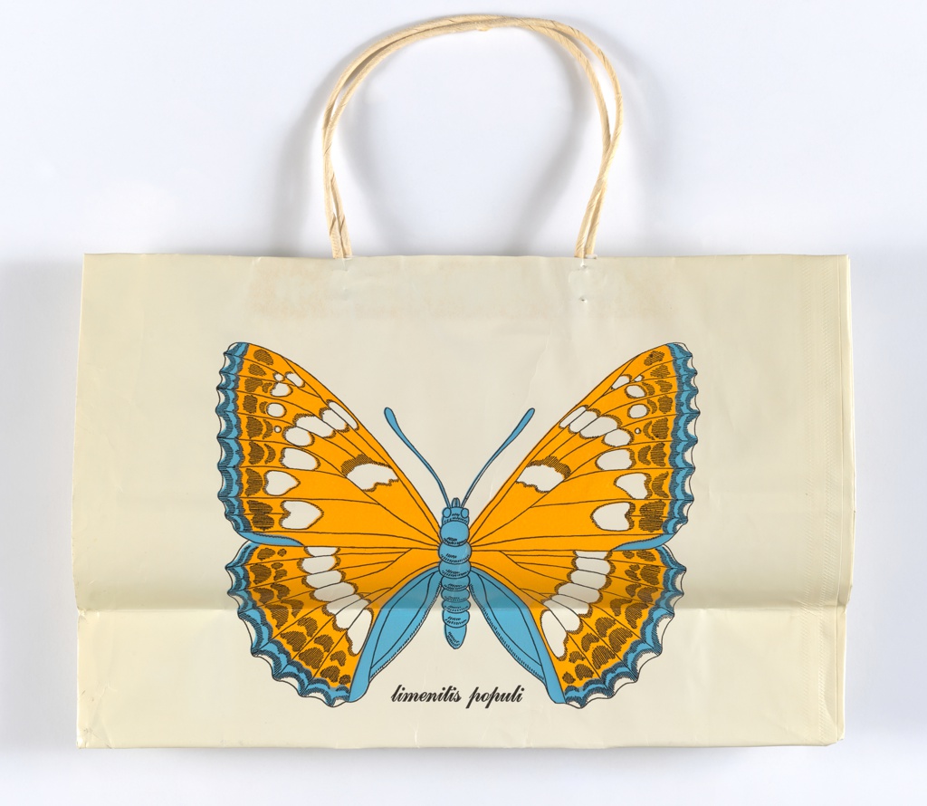 This is a Shopping bag. It is dated 1981 and we acquired it in 2000. Its medium is paper. It is a part of the Drawings, Prints, and Graphic Design department.