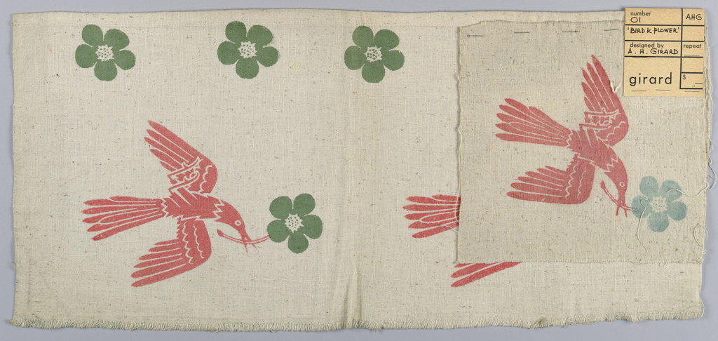 Textile Fragment, Bird and Flower; Designed by Alexander Hayden Girard (American, 1907–1993); cotton; Warp x Weft: 27.9 x 60.3 cm (11 x 23 3/4 in.); Gift of Alexander H. Girard; 1969-165-1194