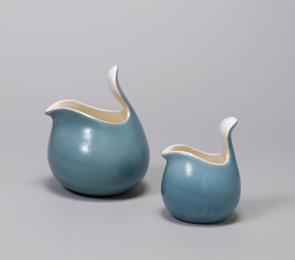 This is a creamer. It was designed by Eva Zeisel and manufactured by Red Wing Pottery. It is dated 1947 and we acquired it in 2000. Its medium is earthenware. It is a part of the Product Design and Decorative Arts department.