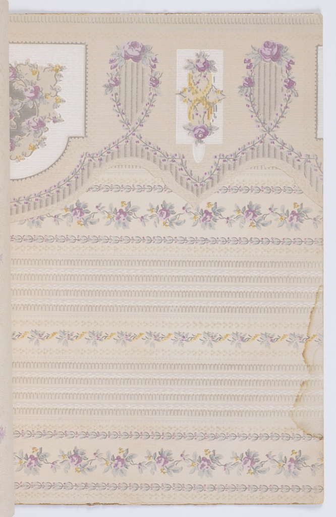 Sample books are important part of the museum’s wallpaper collection because they contain the entire range of designs produced in a given year, including papers made to be hung together. Details such as prices and decorating advice are often offered.