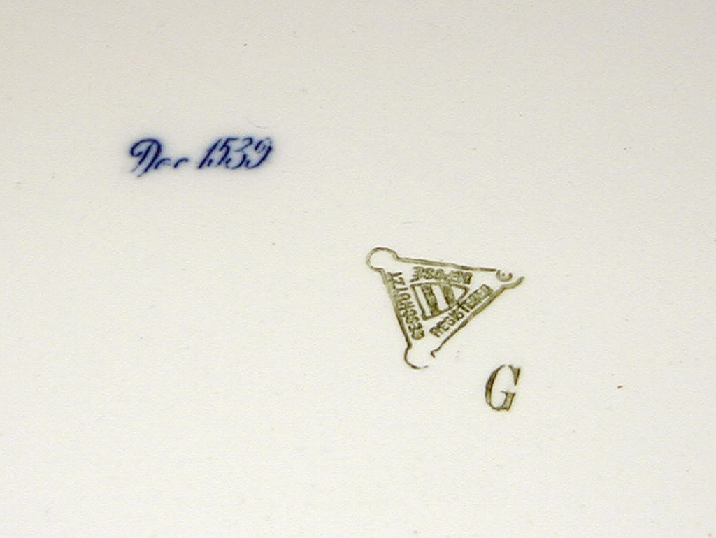 This is a tray. It was manufactured by Wachtersbach. It is dated ca. 1930 and we acquired it in 2001. Its medium is glazed earthenware, metal. It is a part of the Product Design and Decorative Arts department.