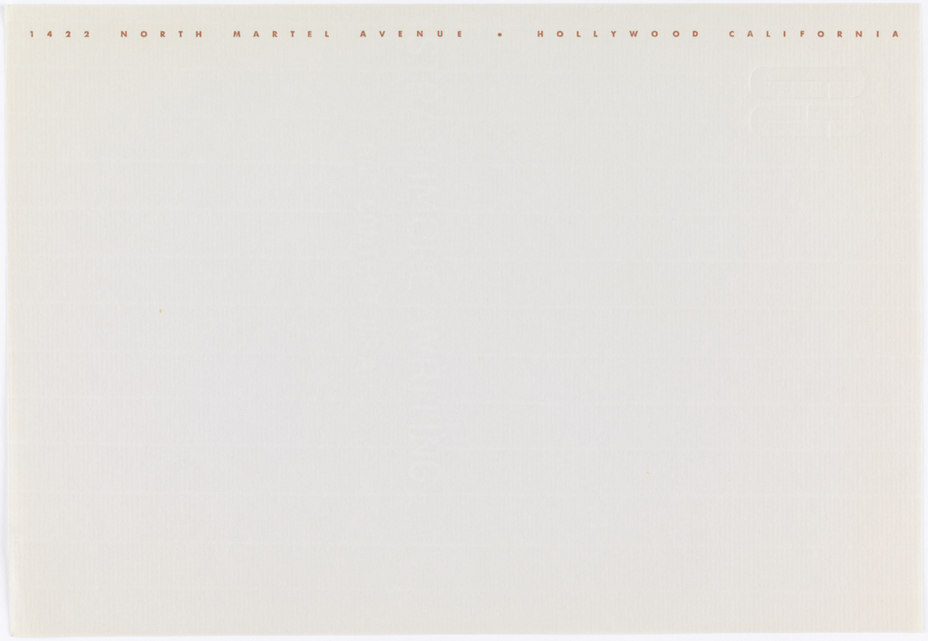 Letterhead, CS 1422 North Martel Avenue Hollywood California