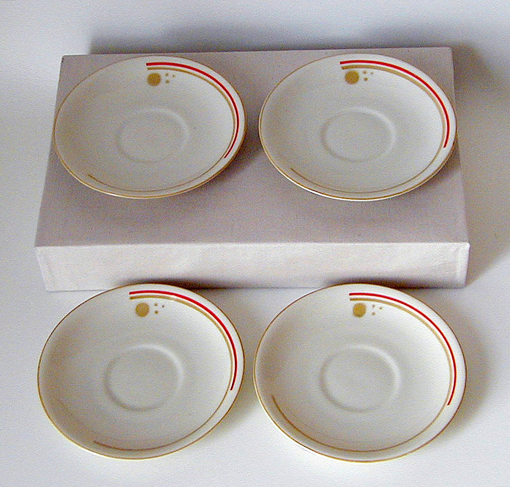 This is a cup and saucer. It was manufactured by Zeh, Scherzer & Co.. It is dated ca. 1930 and we acquired it in 2002. Its medium is glazed porcelain. It is a part of the Product Design and Decorative Arts department.