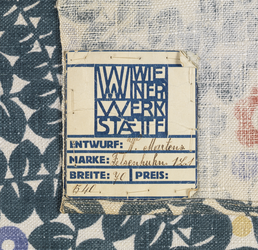 This is a Textile. It was designed by Wilhelm Martens and printed by Neunkirchner Druckfabrik and made for Wiener Werkstätte. It is dated 1910–12 and we acquired it in 2003. Its medium is linen and its technique is block printed on plain weave. It is a part of the Textiles department.