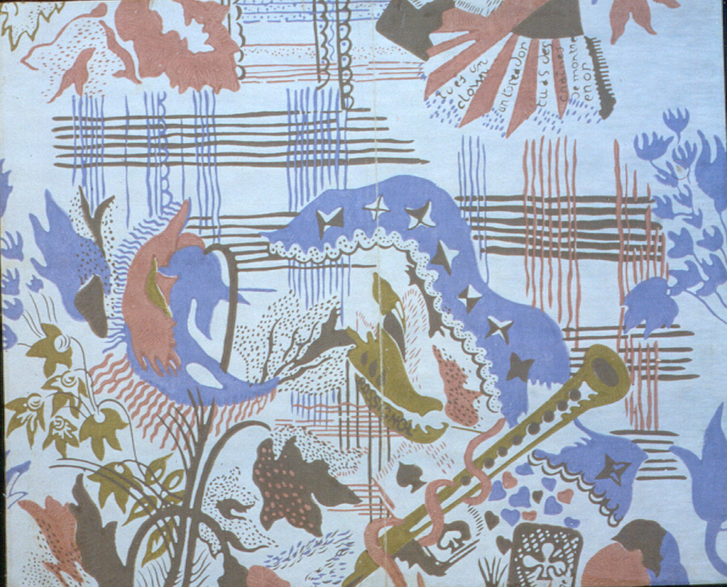 This is a Sidewall. It was designed by Jean Lurçat. It is dated ca. 1923 and we acquired it in 1930. Its medium is block printed on machine-made paper. It is a part of the Wallcoverings department.