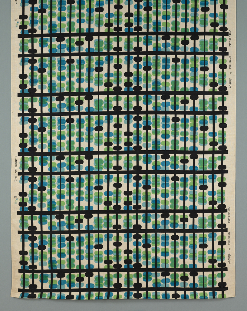 Textile, Abacus; Designed by Paul Rand (American, 1914–1996); Manufactured by L. Anton Maix, Inc. (United States); USA; linen; H x W: 290.8 x 130.2 cm (114 1/2 x 51 1/4 in.) Repeat H: 102.9 cm (40 1/2 in.); Museum purchase through gift of Mrs. William Goulding; 2003-7-1