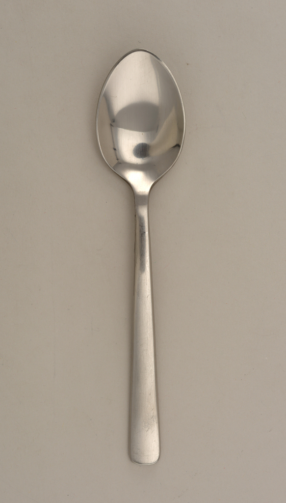 This is a Teaspoon. It was designed by Kay Bojesen and manufactured by Rosendahl and made by Kay Bojesen. It is dated 1980 and we acquired it in 1992. Its medium is stainless steel. It is a part of the Product Design and Decorative Arts department.