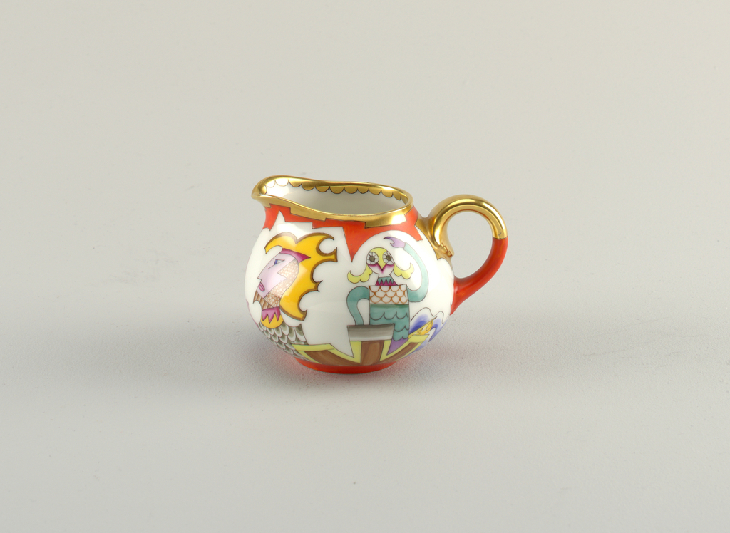 This is a creamer. It was designed by Franz von Zülow and manufactured by Wiener Porzellanmanufaktur. It is dated ca. 1925 and we acquired it in 2008. Its medium is porcelain. It is a part of the Product Design and Decorative Arts department.