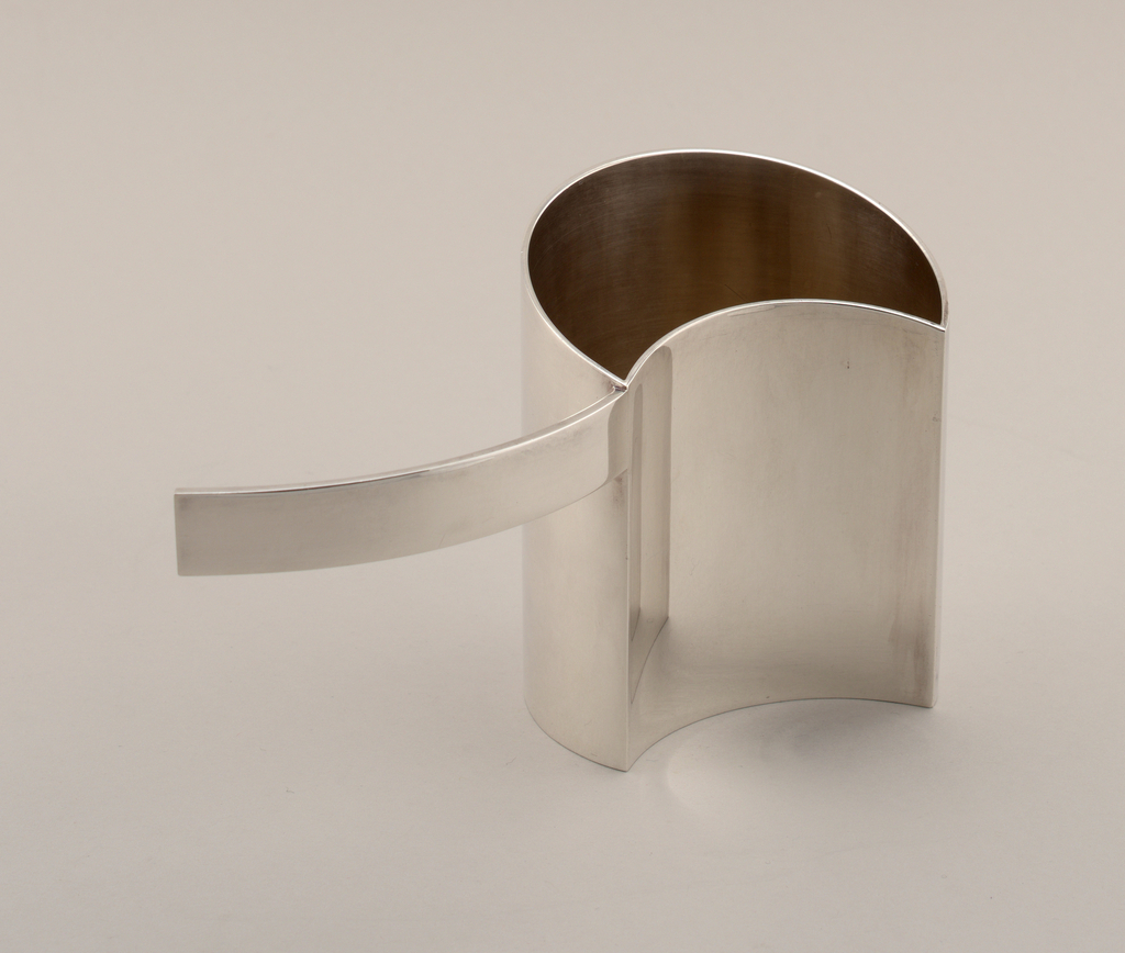 This is a creamer. It was designed by Lino Sabattini and manufactured by Sabattini Argenteria S.p.A.. It is dated 1971 and we acquired it in 2008. Its medium is silver plated, metal. It is a part of the Product Design and Decorative Arts department.