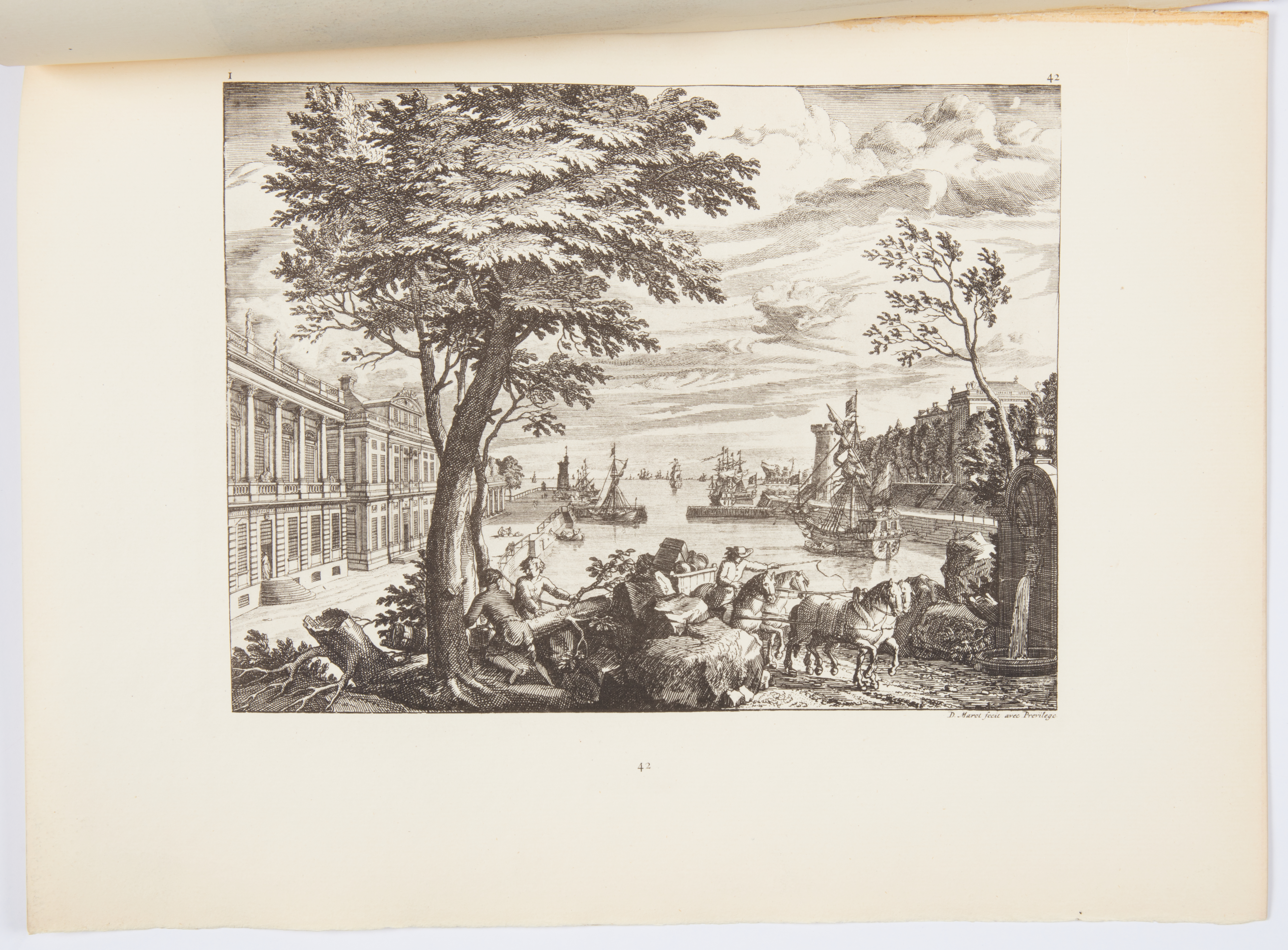 This is a Bound print. It was designed by Daniel Marot and published by Ernst Wasmuth and engraved by Daniel Marot. It is dated 1892 and we acquired it in 1920. It is a part of the Drawings, Prints, and Graphic Design department.