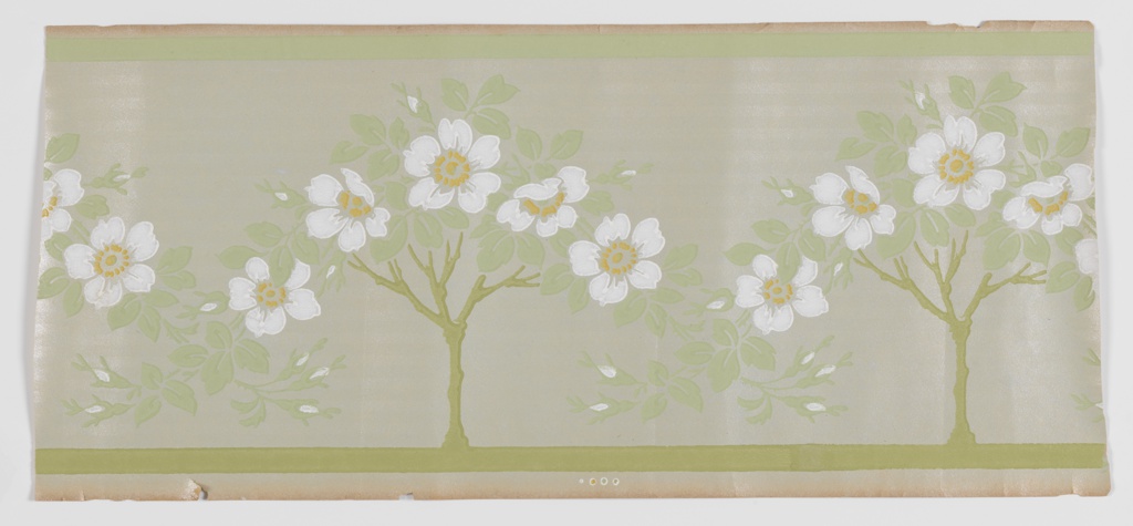 This is a Border. It was manufactured by J. Grantil Company. It is dated 1890–1910 and we acquired it in 2010. Its medium is machine-printed paper. It is a part of the Wallcoverings department.