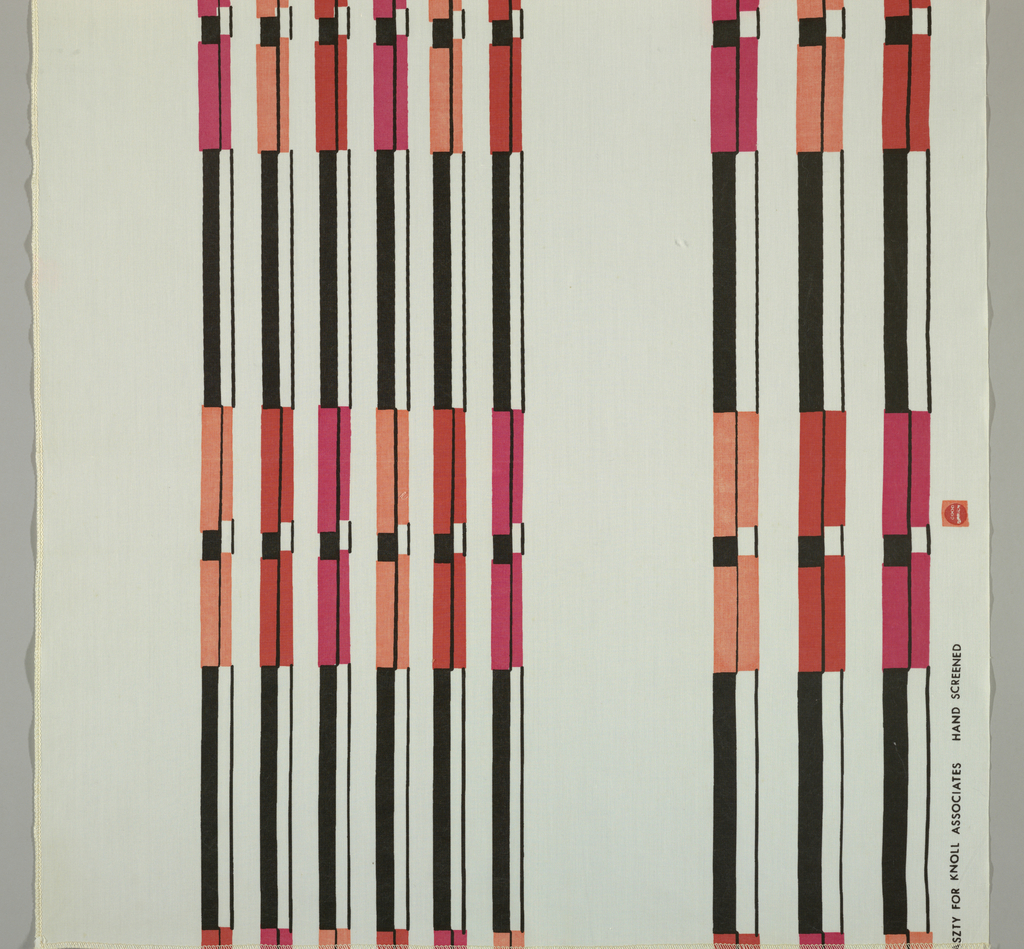 Triad, designed by Eszter Haraszty for Knoll, was featured in the museum’s 1956 exhibition, Design by the Yard: Textile Printing from 800 to 1956. The design also received the American Institute of Decorators first award for printed fabrics in 1955.