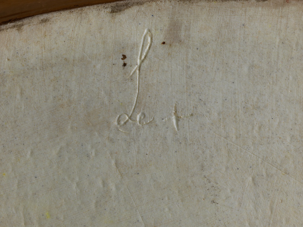 Underside: [1] ""Manufacture Impériale SÈVRES" surrounding crowned eagle, printed in red (very faded, manufactory mark) [2] cursive "C L", incised [3] cursive "DC", incised [4] "Le+" with a plus sign or cross (?), incised [5] cursive "12 M..." (?), incised and painted in gold