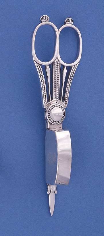 This is a candle snuffer. It was made by Thomas Radcliffe. It is dated 1823 and we acquired it in 1981. Its medium is silver. It is a part of the Product Design and Decorative Arts department.
