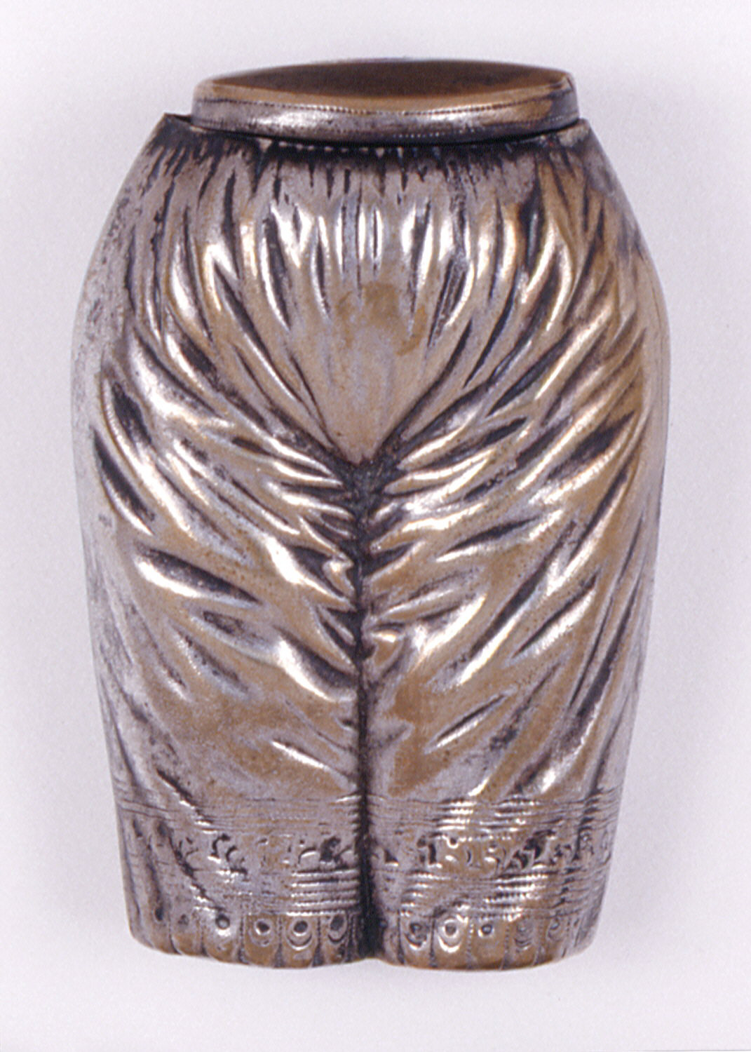 Bloomers Matchsafe; plated metal; 5.6 x 3.8 x 2.4 cm (2 3/16 x 1 1/2 x 15/16 in. ); Gift of Stephen W. Brener and Carol B. Brener; 1982-23-72