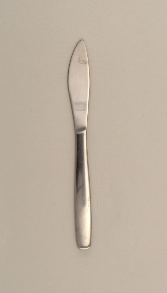 This is a knife. It was designed by Sigurd Persson. It is dated 20th century and we acquired it in 1982. Its medium is steel, stainless. It is a part of the Product Design and Decorative Arts department.